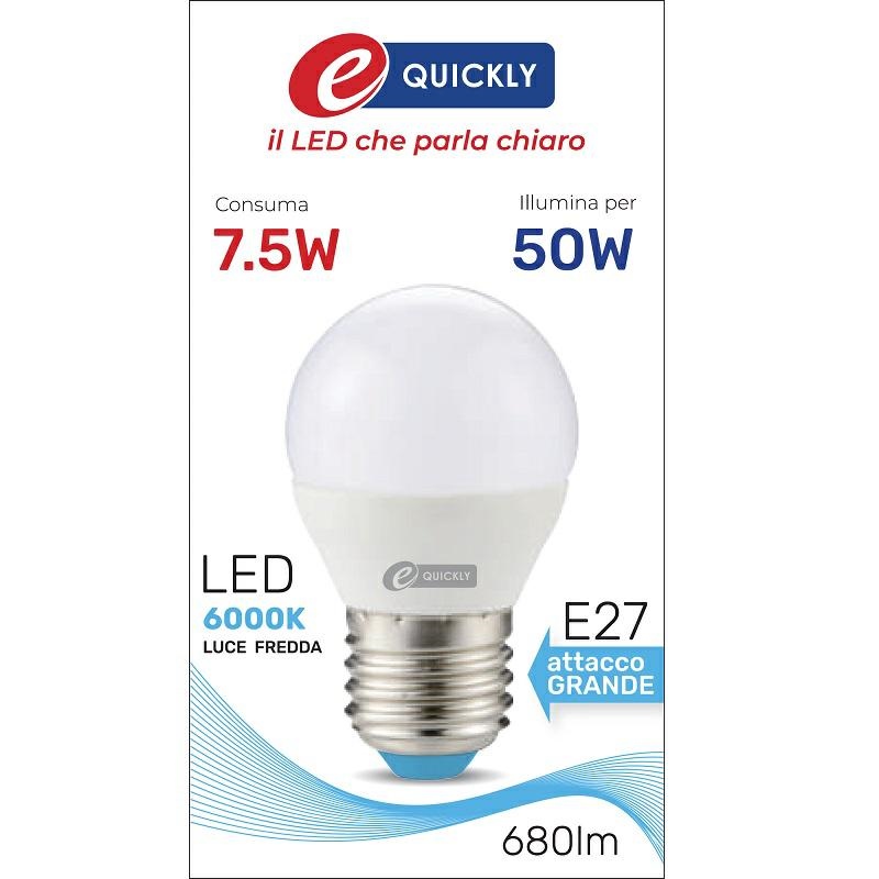 LAMPADINA SFERA LED G45 E27 7,5W 6000K