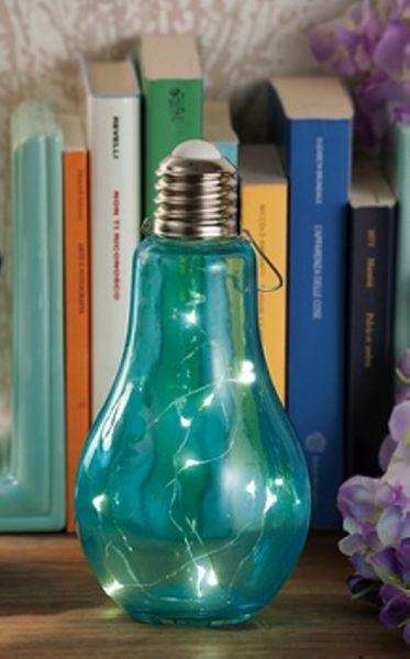 LANTERNA IN VETRO MODELLO LAMPADINA D.11X22CM 12LED 6COLORI