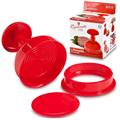 Corpo in polipropilene non tossico per uso alimentare. La molla di ritorno del pomolo è di acciaio inox. Diametro cm 9. Fondo rimovibile. Facilmente smontabile per una accurate pulizia. Lavabile in lavastoviglie USO Per preparare velocemente e facilmente hamburgers con qualsiasi tipo di carne. Grazie al suo fondo rimovibile non dovete utilizzare gli appositi foglietti per trasferire l’hamburger dallo stampo al grill.