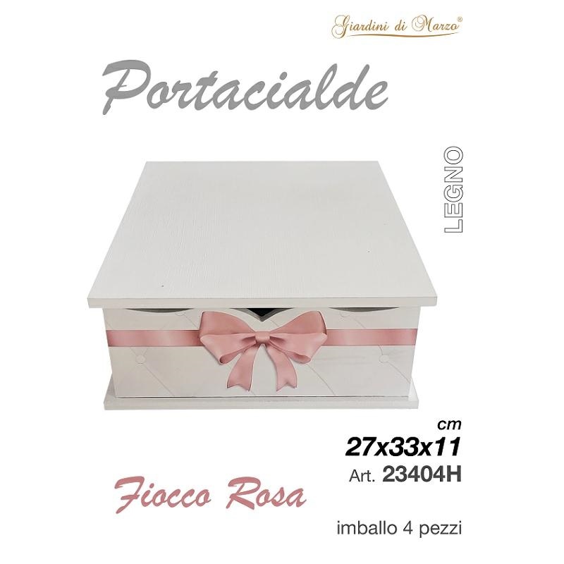 SCATOLA PORTACIALDE LEGNO BIANCO FIOCCO ROSA 27X33X11 CM